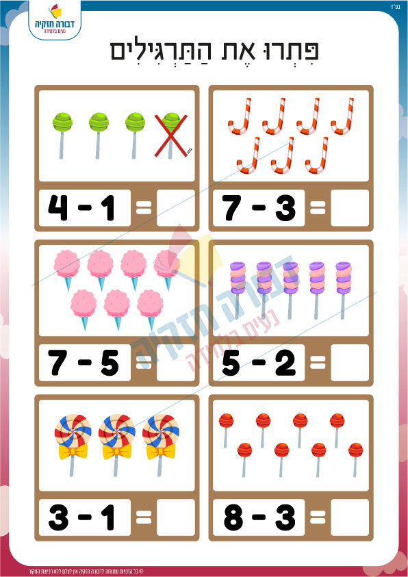 דף עבודה ותרגול בחיסור- סוכריות